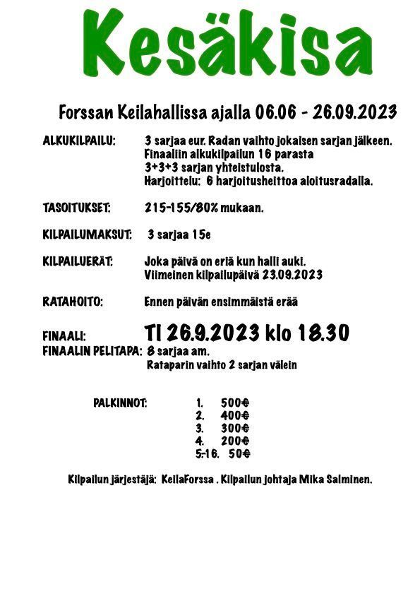 KilpailuilmoitusOlosuhdeFINALISTIT 16 parastaFinaalin tuloksetTilanne